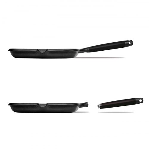 SARTEN INDUCCION 27 CM DE DIAMETRO. CUERPO DE ALUMINIO FUNDIDO DE GRAN ESPESOR PARA UNA DISTRIBUCIÓN HOMOGÉNEA DEL CALOR Y UNA MÁXIMA EFICIENCIA ENERGÉTICA. BASE DE INDUCCIÓN FULL INDUCTION PARA ASEGURAR EL MEJOR RENDIMIENTO EN TODAS LAS SUPERFICIES DE COCINA. RECUBRIMIENTO ANTIADHERENTE DE ALTA CALIDAD LIBRE DE PFOA PARA UNA ALIMENTACIÓN BAJA EN GRASAS.. MANGOS DESMONTABLES CON FIJACIÓN DE ROSCA DE SEGURIDAD. APTA PARA LAVAVAJILLAS. RESISTENTE AL HORNO HASTA 250°C. (SIN LOS MANGOS).