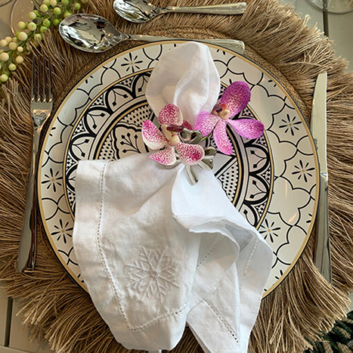 SERVILLETA DE LINO COLOR BLANCO 45 X 45 CM CON BORDADO EN UN EXTREMO