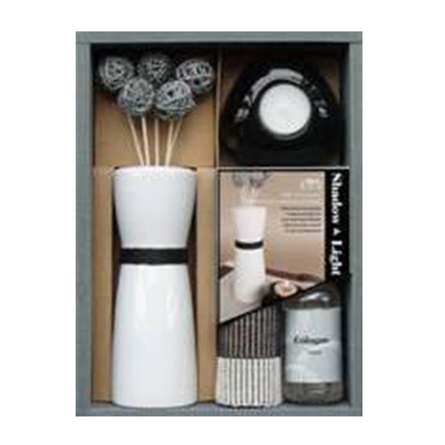 SET DE AROMA 171- 1 FLORERO CERAMICA – 1 SET DE DIFUSOR DE RATTAN – 1 BOTELLITA CON 100ML ACEITE – 1 CLOTH MATAM – 1 CANDELABRO CON TEALIGHT