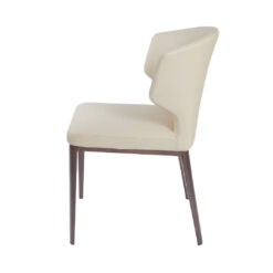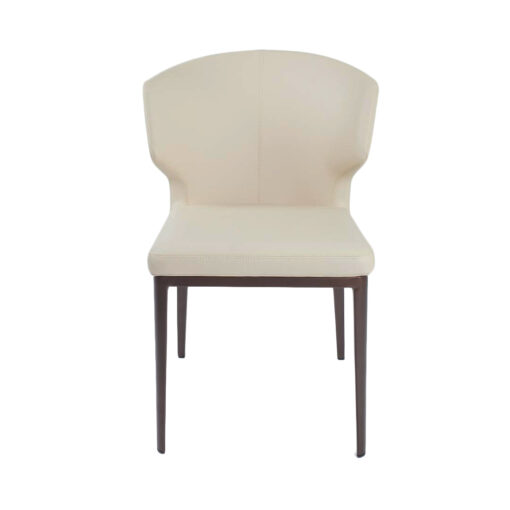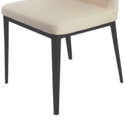 SILLA DE COMEDOR MODELO A111. ESTRUCTURA METALICA NEGRA TAPIZADA EN CUERO ECOLIGICO COLOR BEIGE 1045B. ACOGEDORA CON RESPALDO ENVOLVENTE Y ASIENTO MULLIDO Y ACOLCHADO DESCANSAN SOBRE PATAS DE METAL.