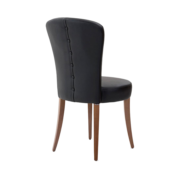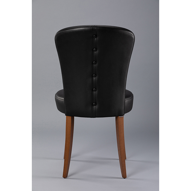 SILLA DE COMEDOR MODELO EUFORIA. ESTRUCTURA DE MADERA MACIZA. ASIENTO Y RESPALDO TOTALMENTE TAPIZADOS EN CUERO ECOLOGICO NEGRO. BOTONES EN EL EXTERIOR DE LA ESPALDA. ALTURA DEL ASIENTO: 50 CM. EUFORIA ES EL COLMO DE LA ARMONÍA Y LA ELEGANCIA. UNA ABUNDANCIA DE CURVAS PROPORCIONA UN EXCELENTE NIVEL DE COMODIDAD Y UN REPLANTEAMIENTO MODERNO DEL ESTILO CLÁSICO. LOS MATERIALES SE TAPIZAN DIRECTAMENTE EN EL MARCO QUE CUENTA CON UN RESPALDO CÓMODO