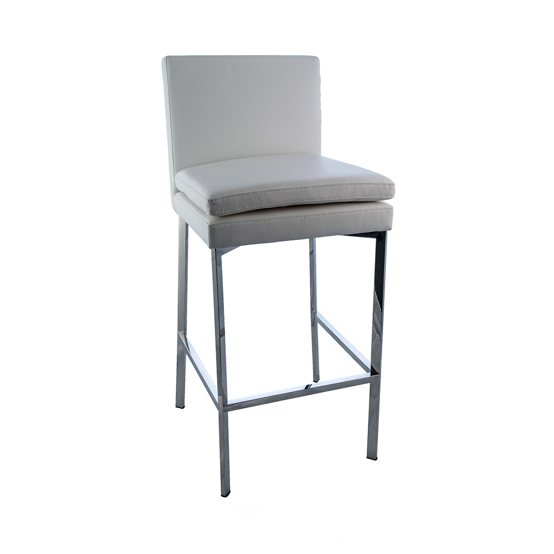 SILLA BAR MODELO CS009. CON ESTRUCTURA EN ACERO INOXIDABLE ASIENTO Y RESPALDO TAPIZADO EN CUERO ECOLOGICO BLANCO