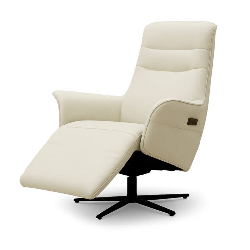 SILLÓN TAPIZADO EN CUERO BEIGE. GIRATORIO Y RECLINABLE CON SISTEMA ELÉCTRICO .