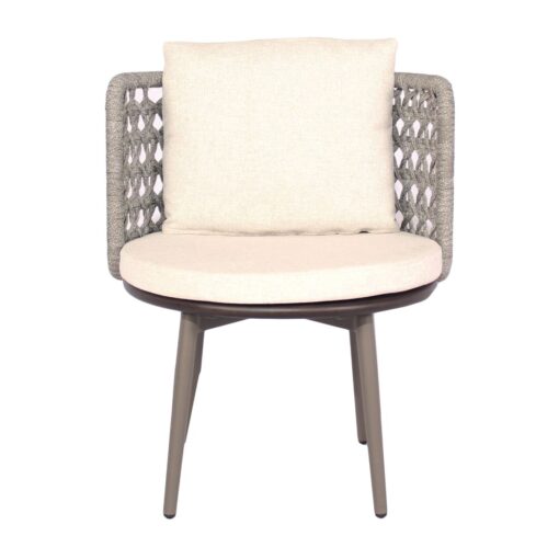 SILLON DE EXTERIOR GIRATORIO DE COMEDOR MODELO MANTRA ESTRUCTURA EN ALUMINIO Y TEJIDO EN CUERDA SINTETICA ALMOHADONES TAPIZADOS CON TELA SUNBRELLA