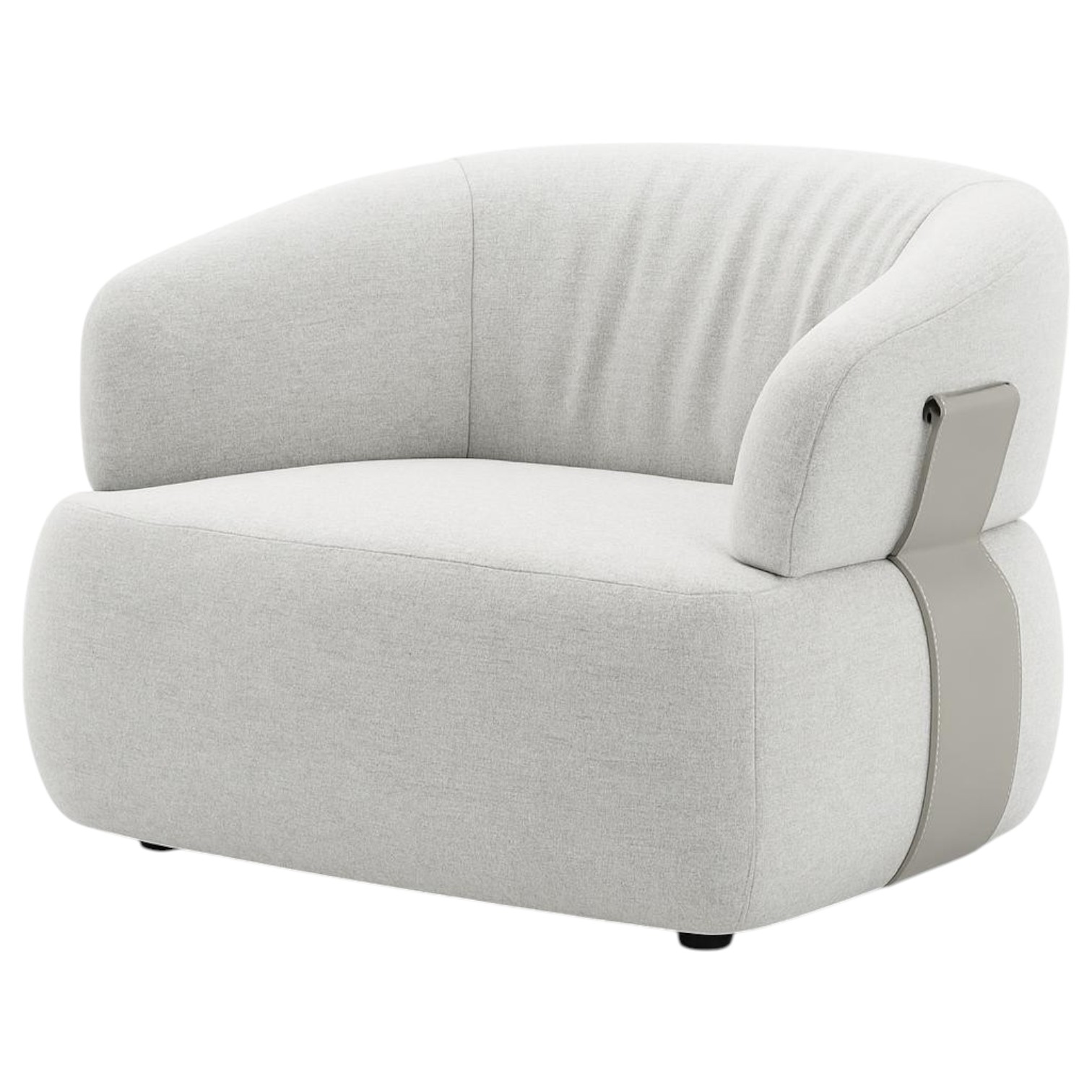 SILLON DE LIVING ESTRUCTURA EN ACERO COLOR TITANIO TAPIZADO EN TELA CON DETALLE EN CUERO VISON
