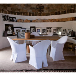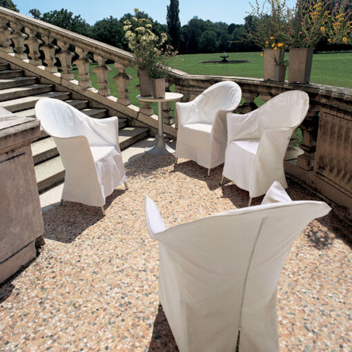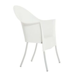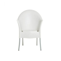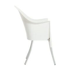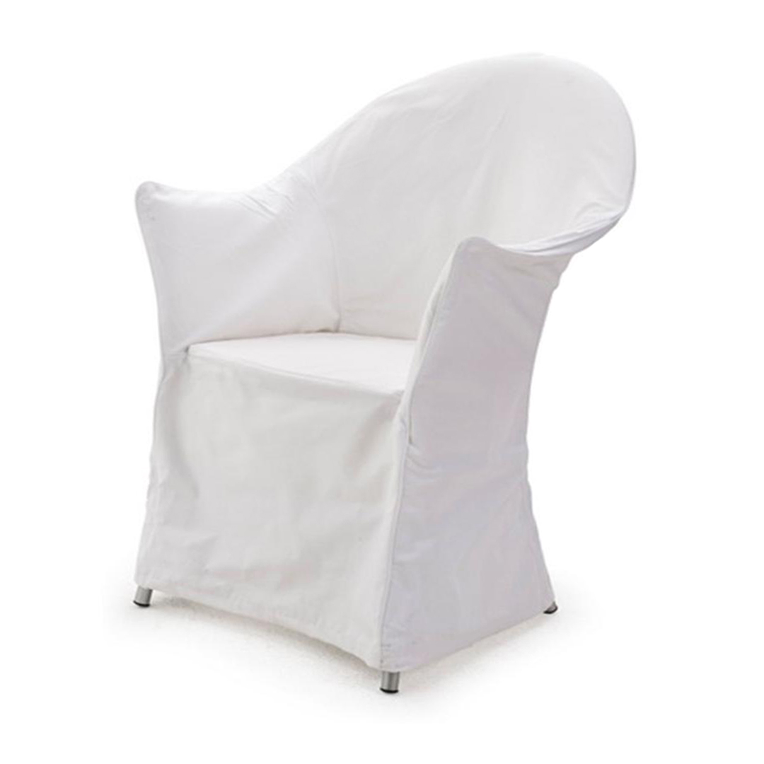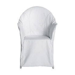 SILLON DE COMEDOR MODELO LORD YO COVER. DISEÑADO POR PHILIPPE STARCK. INTERIOR DE ESTRUCTURA DE ALUMINIO CON CARCASA DE POLIPROPILENO. FUNDA SUELTA DE TELA BLANCA CON COJÍN INTERIOR EXTRAÍBLE DE ESPUMA DE POLIURETANO. ALTURA DEL ASIENTO 46 CM. LE TOMÓ A PHILIPPE STARCK REALIZAR UN TRUCO TAN EXTRAORDINARIO CONSTRUIDO CON SUAVES CURVAS Y ESPALDA ERGUIDA CASI UN TRONO PIERNAS LIGERAMENTE DOBLADAS.