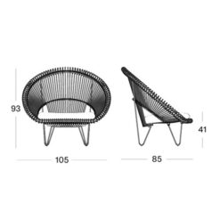 SILLON DE LIVING MODELO CRUZ COCOON. COMBINA DETALLES NOSTÁLGICOS CON COMODIDAD Y PRACTICIDAD. CON UNA SERIE DE BUCLES LINEALES NEGROS ESTÁ HECHO CON MIMBRE DE POLIETILENO NEGRO SOBRE UN MARCO DE ALUMINIO Y TIENE UNA BASE DE ACERO GALVANIZADO CON RECUBRIMIENTO DE POLVO NEGRO CON UN ALMOHADON DE ASIENTO CIRCULAR RELLENO DE ESPUMA QUICK DRY DE 8 CM. . «LLOYD LOOM»». REFRESCANTEMENTE ATEMPORAL.»