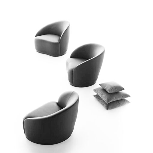 SILLON DE LIVING MODELO CRUZ COCOON. COMBINA DETALLES NOSTÁLGICOS CON COMODIDAD Y PRACTICIDAD. CON UNA SERIE DE BUCLES LINEALES NEGROS ESTÁ HECHO CON MIMBRE DE POLIETILENO NEGRO SOBRE UN MARCO DE ALUMINIO Y TIENE UNA BASE DE ACERO GALVANIZADO CON RECUBRIMIENTO DE POLVO NEGRO CON UN ALMOHADON DE ASIENTO CIRCULAR RELLENO DE ESPUMA QUICK DRY DE 8 CM. . «LLOYD LOOM»». REFRESCANTEMENTE ATEMPORAL.»