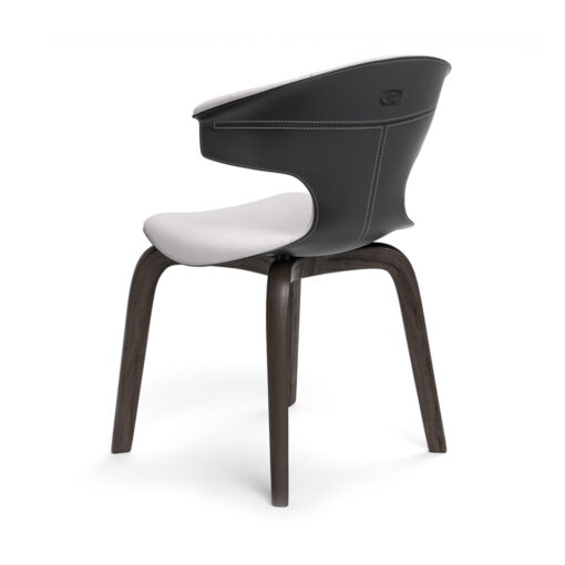 SILLON DE COMEDOR MODELO MONTERA. DISEÑADA POR ROBERTO LAZZERONI. PATAS Y TRASERA DE CUERO MARRON CHOCOLATE ASIENTO Y RESPALDO COLOR BEIGE. COSTURAS LIGERAS CORTES LIMPIOS QUE RESALTAN LA CALIDAD TÁCTIL DE LA PIEL Y EL CUERO. LIGEREZA DE FORMAS Y SOBRE TODO EL ENCANTO SENSORIAL DEL CUERO. CARCASA EN CONTRACHAPADO DE HAYA MOLDEADO CURVADO. ACOLCHADO EN ESPUMA DE POLIURETANO.