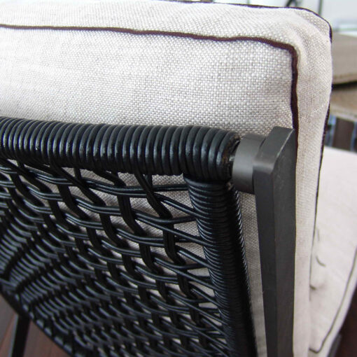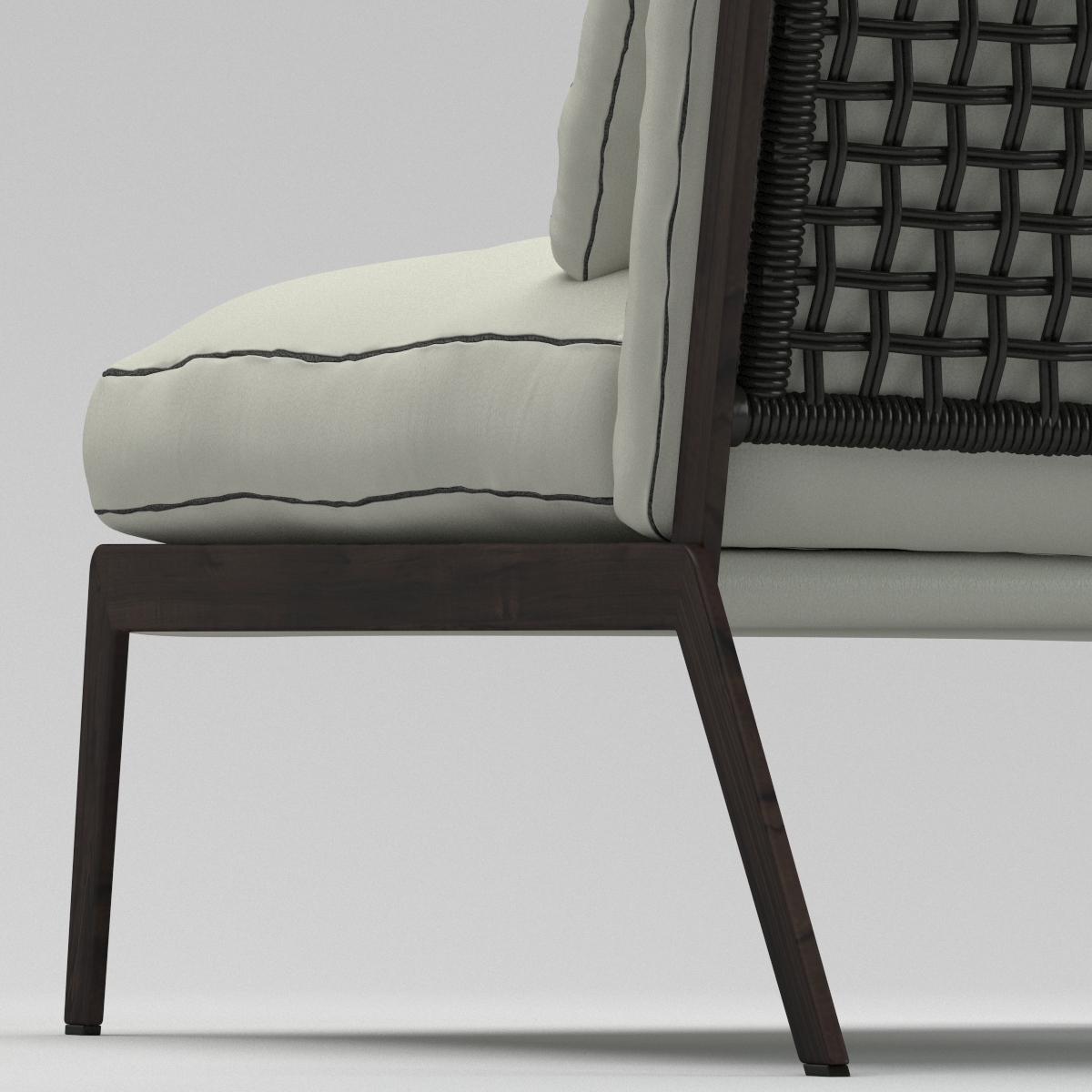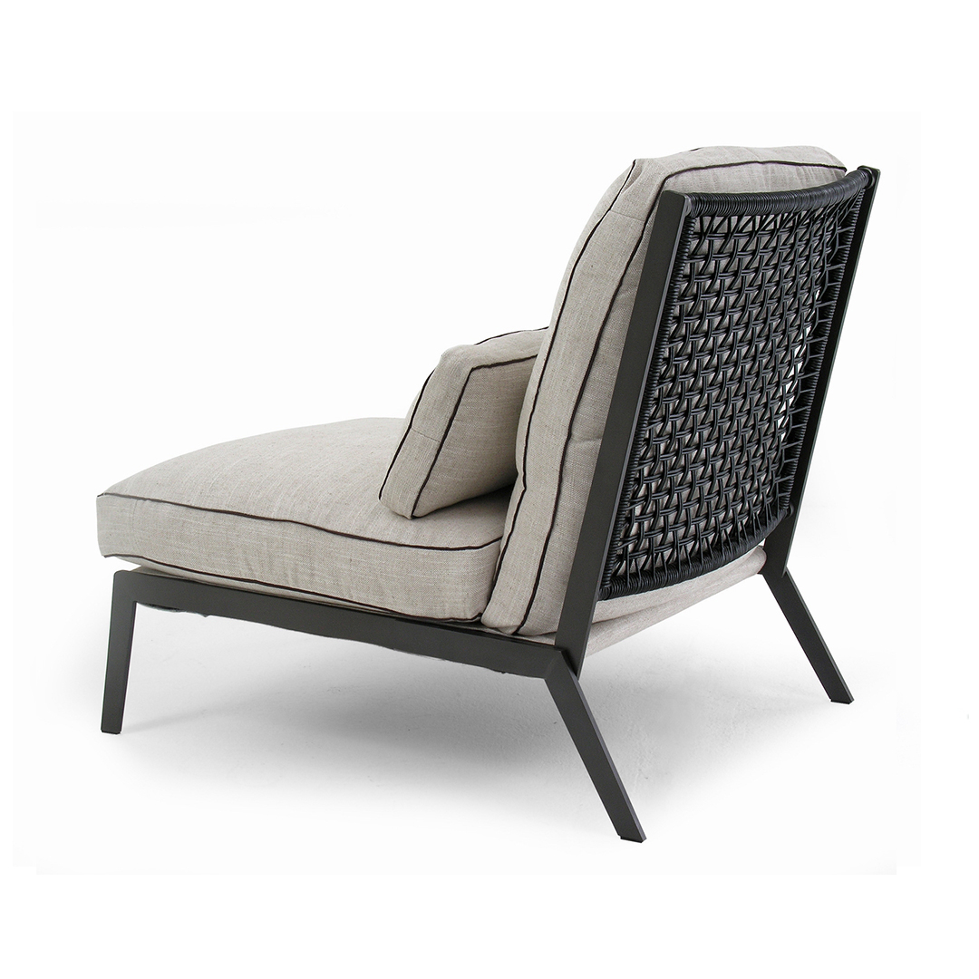 SILLON DE LIVING MODELO ARC. EL ELEGANTE PERFIL DE ZAPATILLA DE LA SILLA ARC PERMITE QUE EL RESPALDO ENTRETEJIDO EN CUERO OCUPE UN LUGAR CENTRAL TAPIZADO CON TELA BEIGE CODIGO 3385-99. APOYANDO UN COJÍN DE RESPALDO RELLENO DE PLUMAS Y UN COJÍN DE ASIENTO DE ESPUMA CON CAPAS HACIA ABAJO EL MARCO DE ACERO ENNEGRECIDO BAJO LE DA FUERZA AL DELICADO DISEÑO DELINEADA CON RIBETES DE COLOR MARRÓN OSCURO EN LOS COJINES. ALTURA DEL ASIENTO 39 CM.