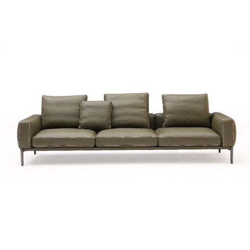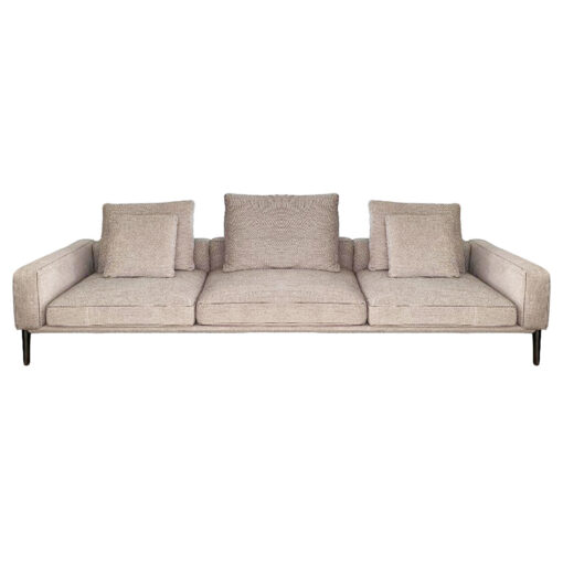 SOFA MODELO OVNI. CON ESTRUCTURA EN ACERO INOXIDABLE TAPIZADO EN TELA. ALTURA DEL ASIENTO 42 CM. FUERTEMENTE CONTEMPORÁNEO SE DISTINGUE POR UNA CUIDADOSA BÚSQUEDA DEL EQUILIBRIO FORMAL. LA IDEA DETRÁS DE LA LÍNEA ES UNA PLATAFORMA BÁSICA MÁGICAMENTE SUSPENDIDA EN EL AIRE COMO UNA ALFOMBRA VOLADORA. LOS 3 ASIENTOS SE PRESENTAN CON RESPALDOS ABRAZADOS POR LOS ALMOHADONES Y LOS BRAZOS DEL SOFÁ ENTERAMENTE ACOLCHONADOS.