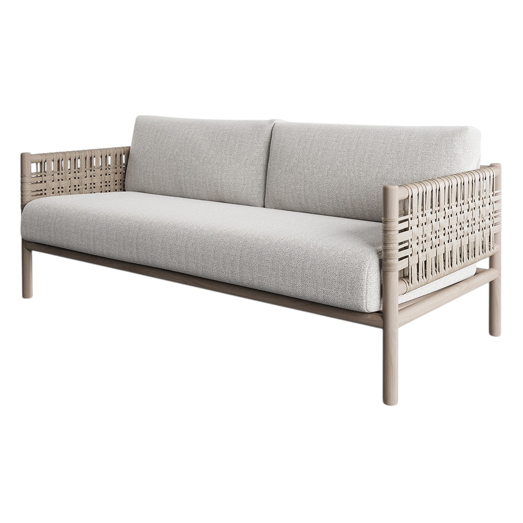 SOFA DE EXTERIOR DE DOS CUERPOS MODELO AKIRA EN MADERA DE TEKA ALMOHADONES TAPIZADOS EN TELA SUNBRELLA