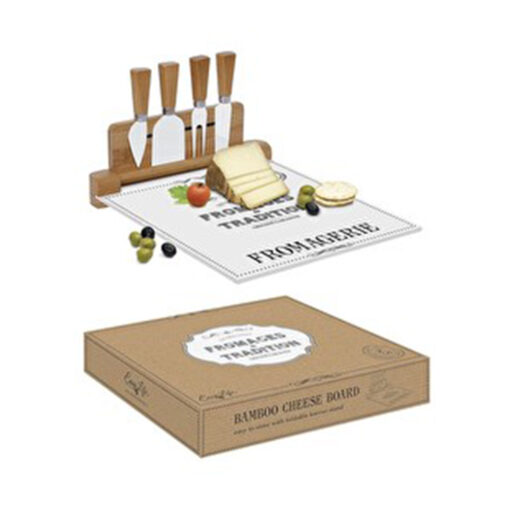 TABLA DE VIDRIO PARA QUESOS CON 4 UTENSILIOS DE QUESO MODELO LES DELICES DES GOURMETS