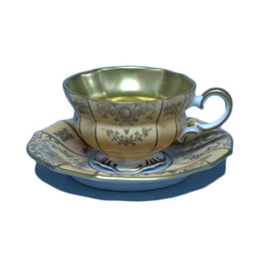 TAZA DE CAFE CON PLATO BEIGE CON ORO
