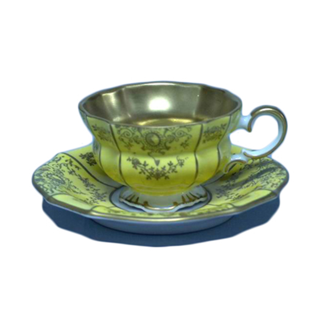 TAZA DE CAFE CON PLATO GELB CON ORO