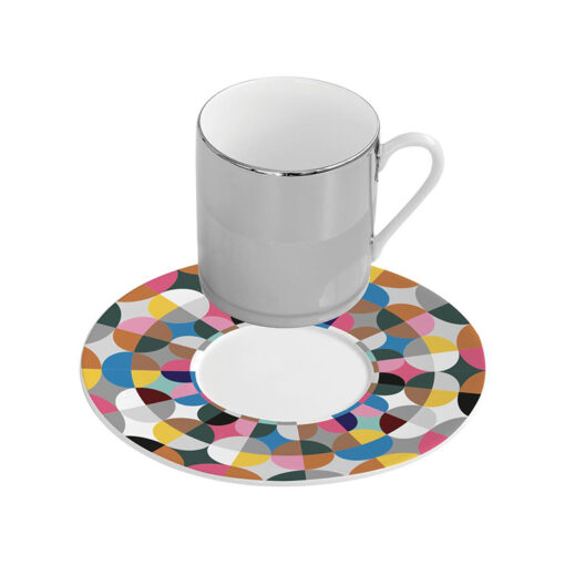 TAZA DE CAFE ESPEJO CON PLATO DE COLOR GEOMETRICAL 01