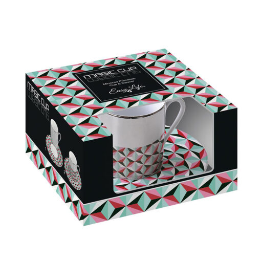 TAZA DE CAFE ESPEJO CON PLATO DE COLOR GEOMETRICAL 03