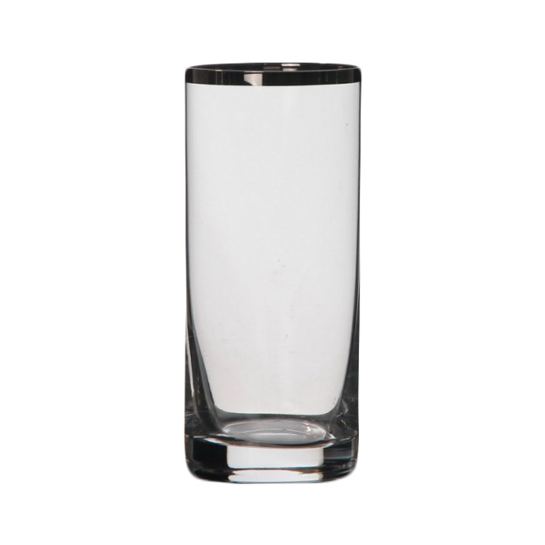 VASO DE VIDRIO TRANSPARENTE CON BORDE PLATEADO