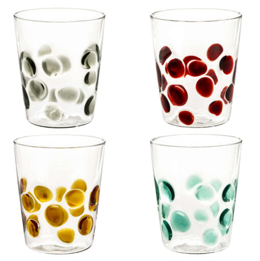 SET DE 4 VASOS MODELO DOTS DE 470 ML. VIDRIO BOROSILICATO SOPLADO A BOCA COLOREADO CON PASTA DE COLORES